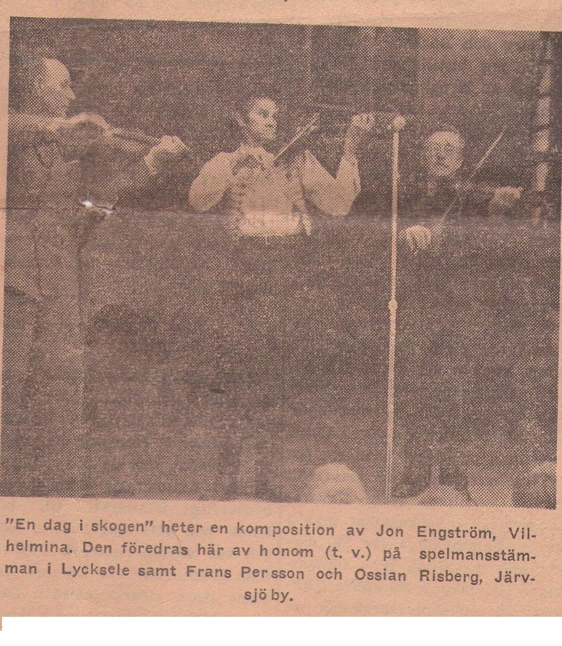 Från Junsele socken kommer även en riksspelman, nämligen Jon Engström från Kvarnå. Han föddes den 22 juni 1905 som son till hemmansägaren och muraren Erik Magnus Engström och hans hustru Brita Kristina Johansdotter.